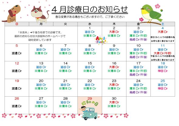 3月・4月 Drお休み・診療時間変更のお知らせ